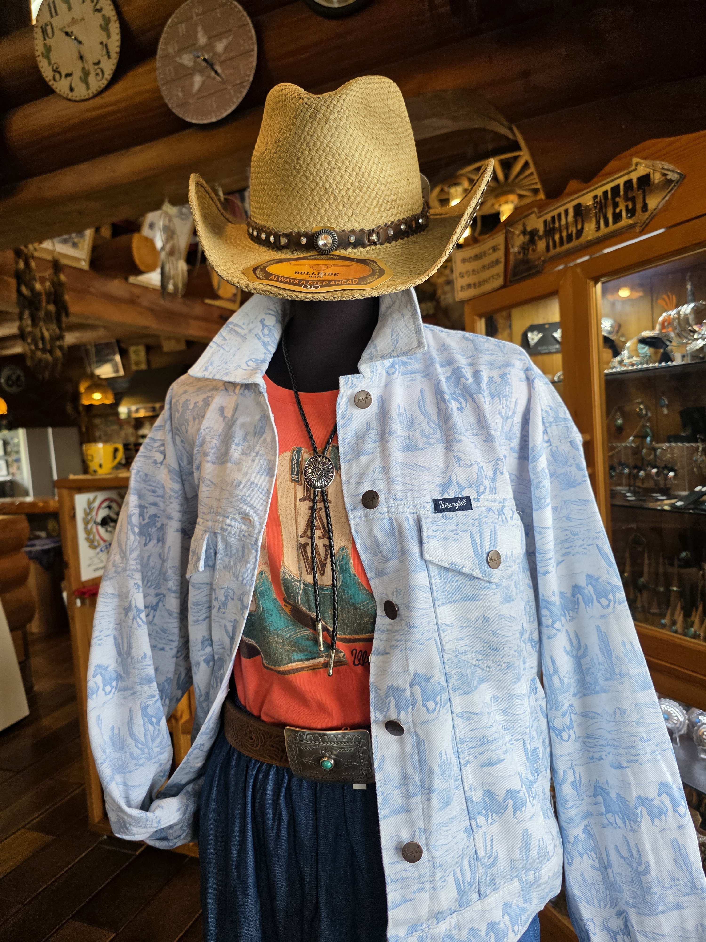 Wranglerのレディースウエア(画像のジャケット、スカート、Tシャツ)